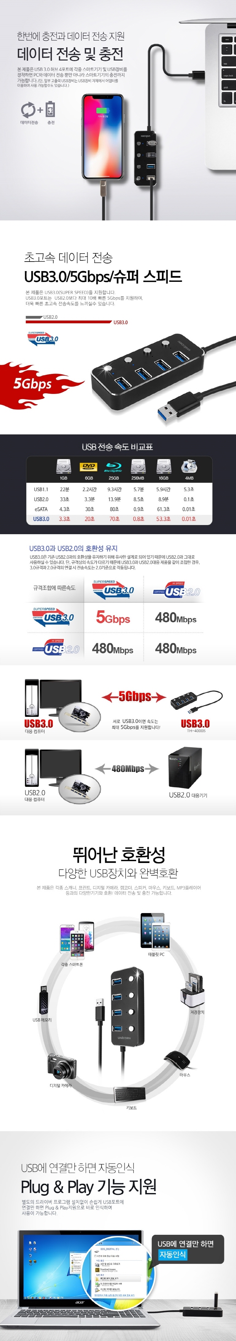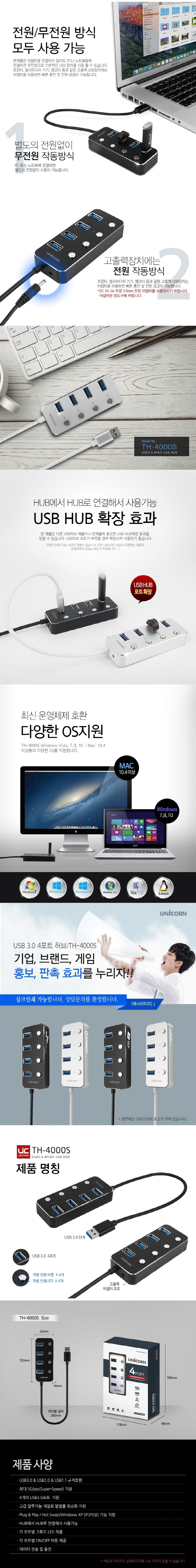 TH-4000S À¯´ÏÄÜ °³º° ½ºÀ§Ä¡ 4Æ÷Æ® USB 3.0 Çãºê